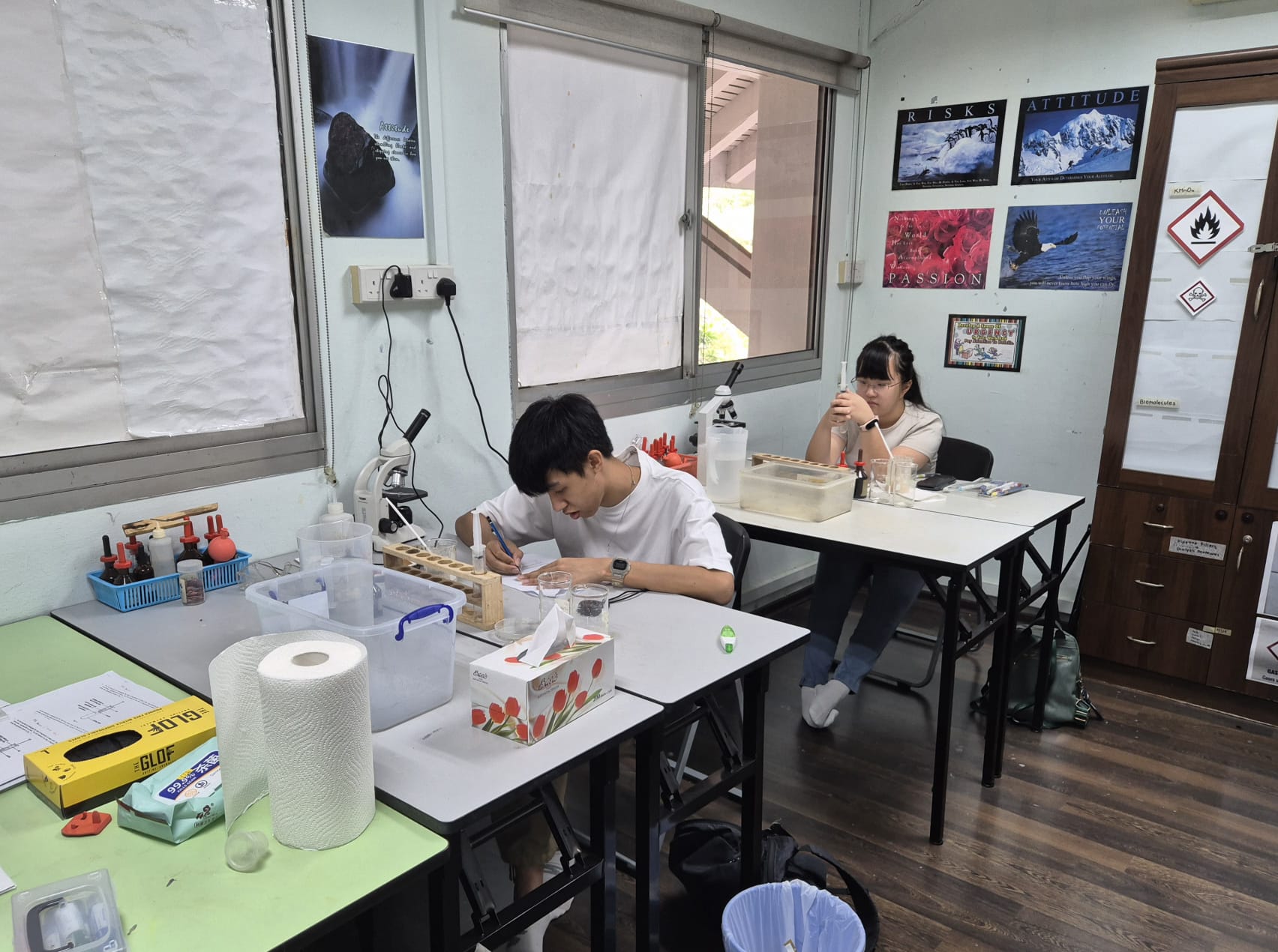 Our laboratory apparatus are exam-grade and the same as those used in MOE schools and our chemicals are all NEA-approved.