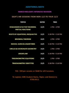Previous Post A.MATH MARCH HOLIDAYS INTENSIVE REVISION