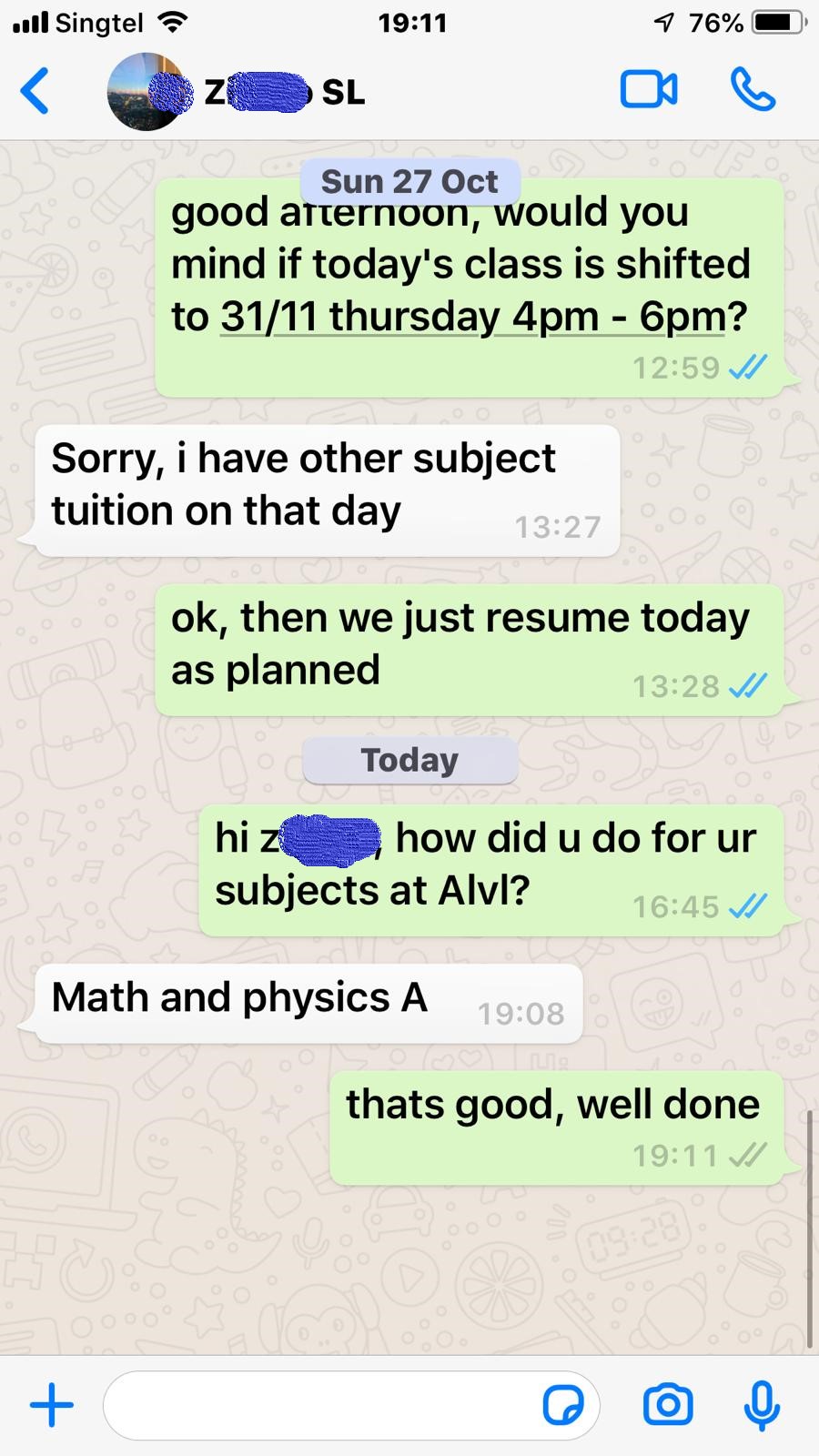 Costs of a one-off trial class is $120. Trial class timings will be arranged based on my discretion and assessment of your child’s needs. Subsequently, should you decide to sign up, the remainder of the monthly fee will be charged, i.e. you sign up for JC1 in Jan, trial is $120, if after the trial you continue, pay the balance of $360-$120=$240.