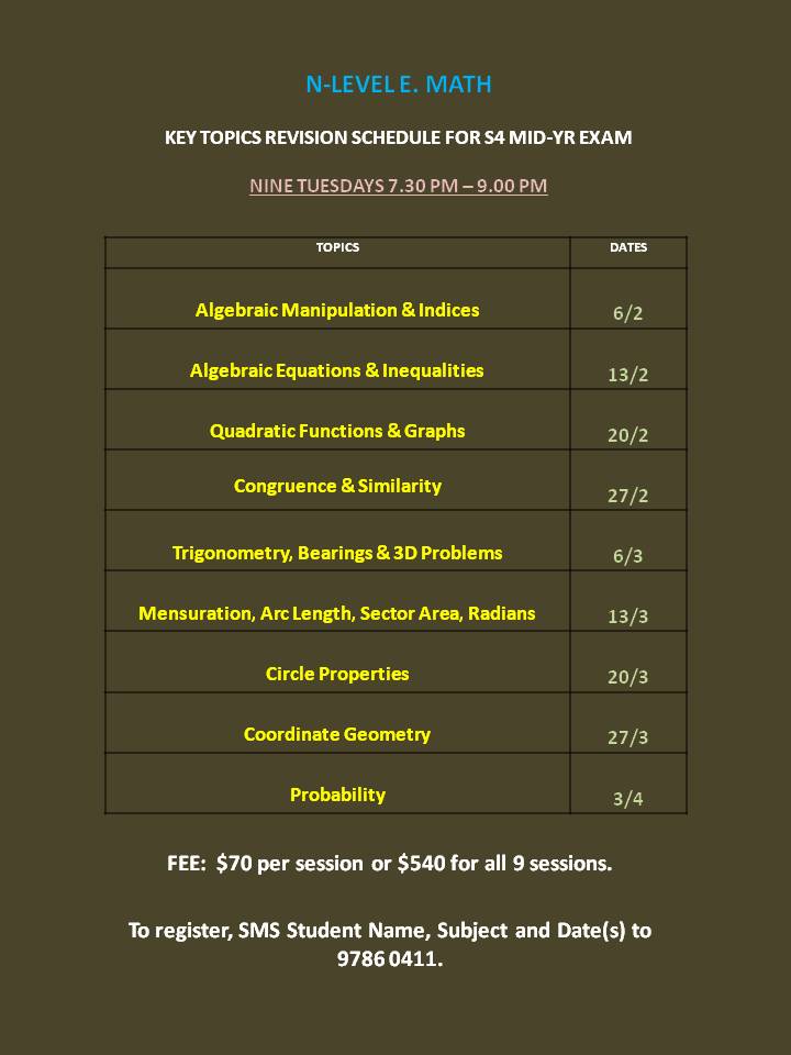 N-LEVEL E.MATH KEY TOPICS REVISION FOR SEC 4 MID-YEAR EXAM