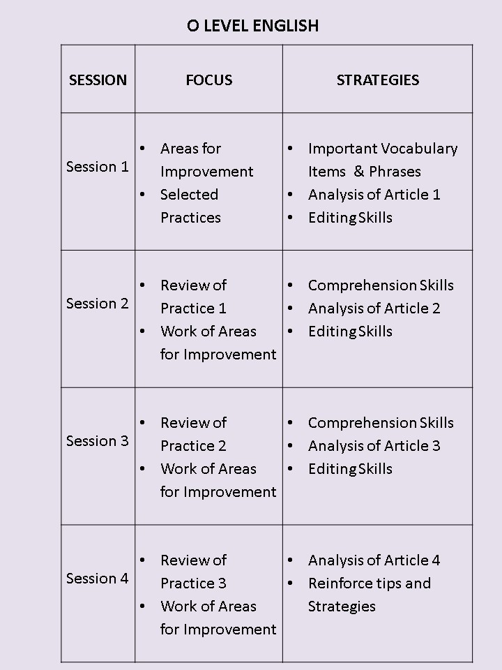 Each course comes with its own diagnostics to help you to identify the root cause of your issues, be it inadequacies in content, unable to tackle the question fully or always not using the right words for the answers. Your work will also be fully assessed, and a full review will be done with you by the end of the class.