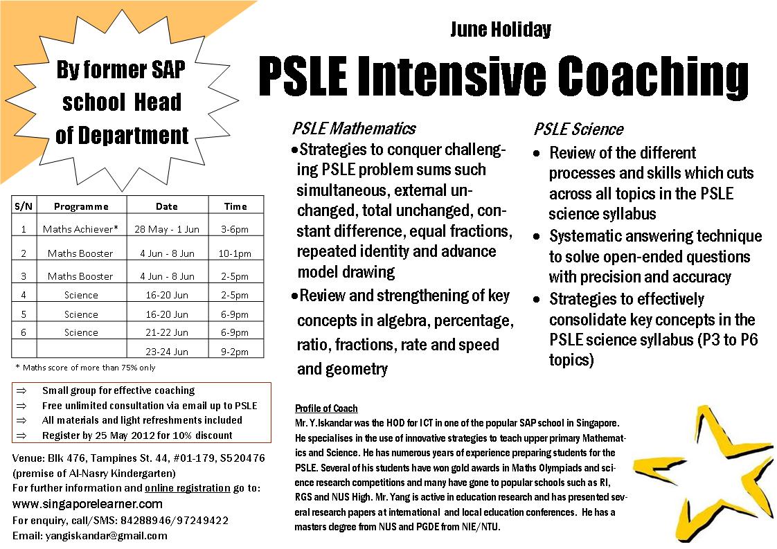To register, sms <Student Name><PSLE MATH> to 97860411.